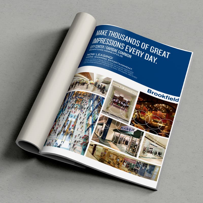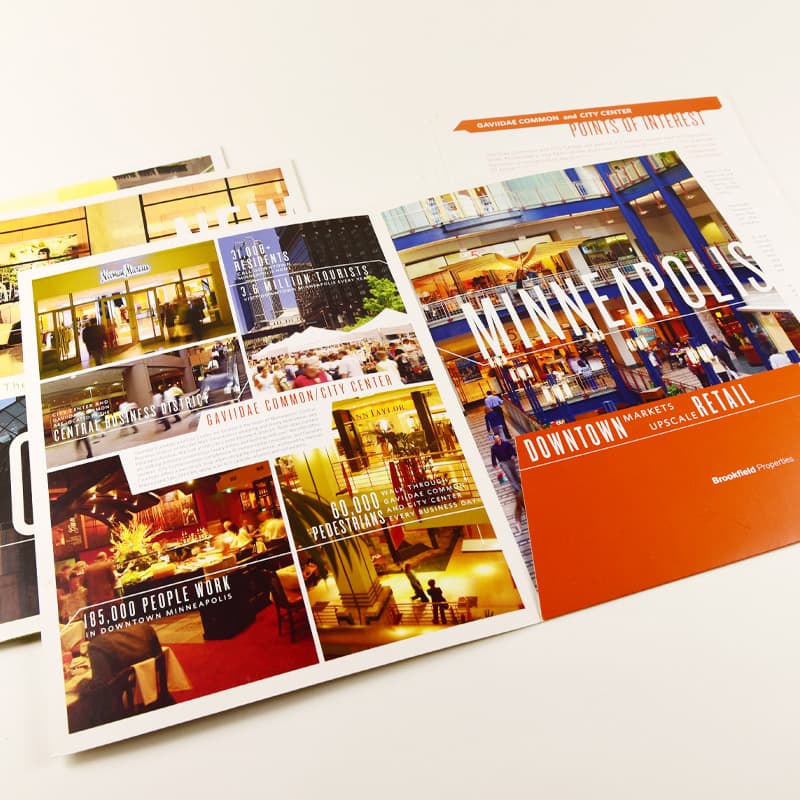 At MOD & Co., I got to dive into a coast-to-coast project with Brookfield Properties, creating sales and trade show materials that connected New York, Minneapolis, and Los Angeles. From the Fig 7 Retail Center to Gaviidae Center and The Palms, we pulled together a sleek, unified sales packet that told their story with style. Throughout the project, we kept in sync with the New York office to ensure everything hit the mark across the board.