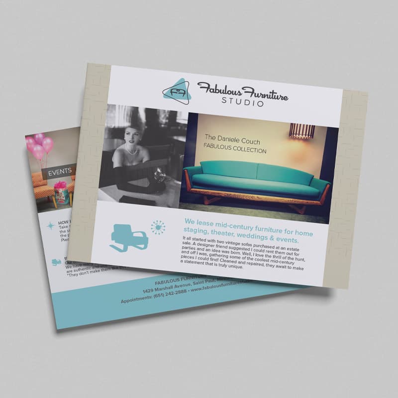 Collaborating with a client who had an incredible eye for vintage furniture was a stylish trip back in time—especially as we brought his vision to life through branding, event materials and website that blended timeless charm with modern staging. Our first big win? Staging the Governor’s mansion for an unforgettable event. The materials we created celebrated the era of each piece while highlighting the range of styles and staging possibilities for homes and events alike.